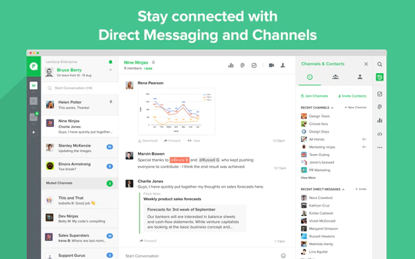 - 它的視頻通話功能允許您直接從聊天或頻道內開始通話,然後共享您的屏幕以了解詳細信息。