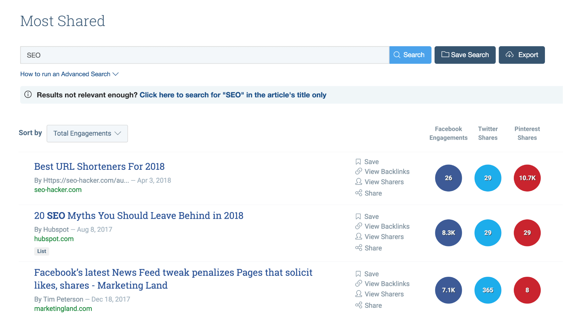 - BuzzSumo 使您能夠通過生成數千個相關關鍵字、了解任何主題、域或位置的趨勢以及搜索數百萬個論壇帖子來發現內容。