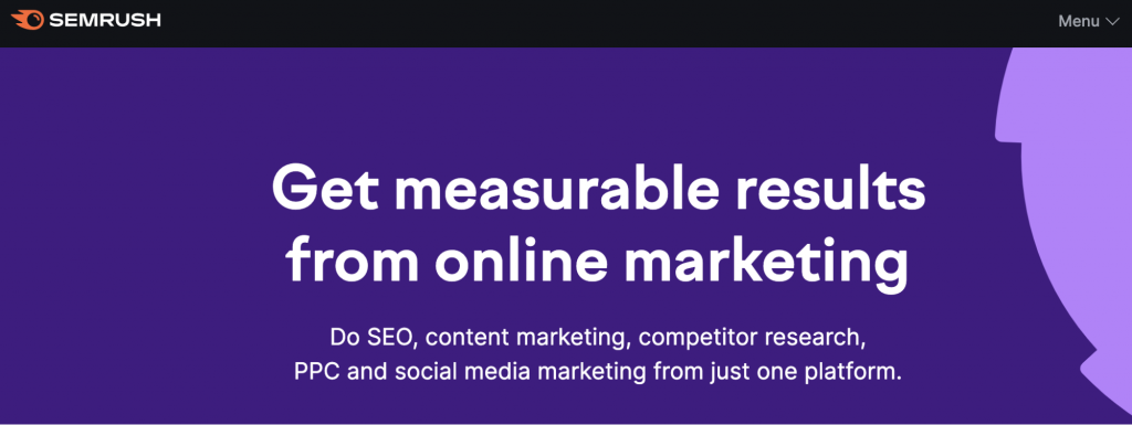 Semrush 是任何希望建立在線形象的內容創建者的必備工具。 該工具提供有價值的反饋,有助於改進 SEO、PPC、PR 內容管理、營銷洞察力和關鍵字研究,僅舉幾例。 它基本上完成了所有工作,使其非常方便且具有成本效益。