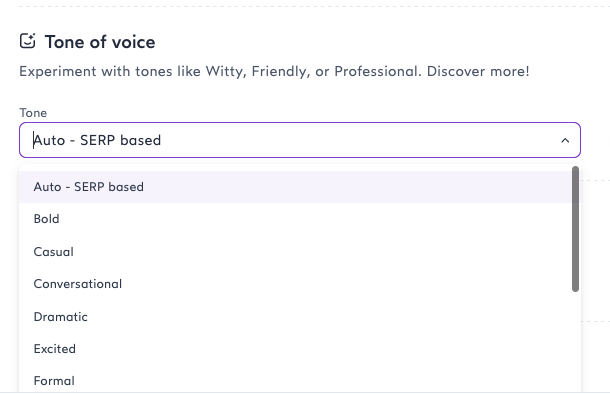 包括語氣和風格、您想要的內容的詳細資訊以及關鍵品牌元素,例如與您的品牌相關的特定短語或關鍵字。 有些工具還允許您添加 URL 作為您想要的語氣或寫作風格的範例。
