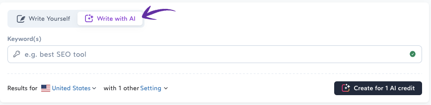 如果您熟悉SurferSEO ,它現在具有「使用 AI 編寫」功能: