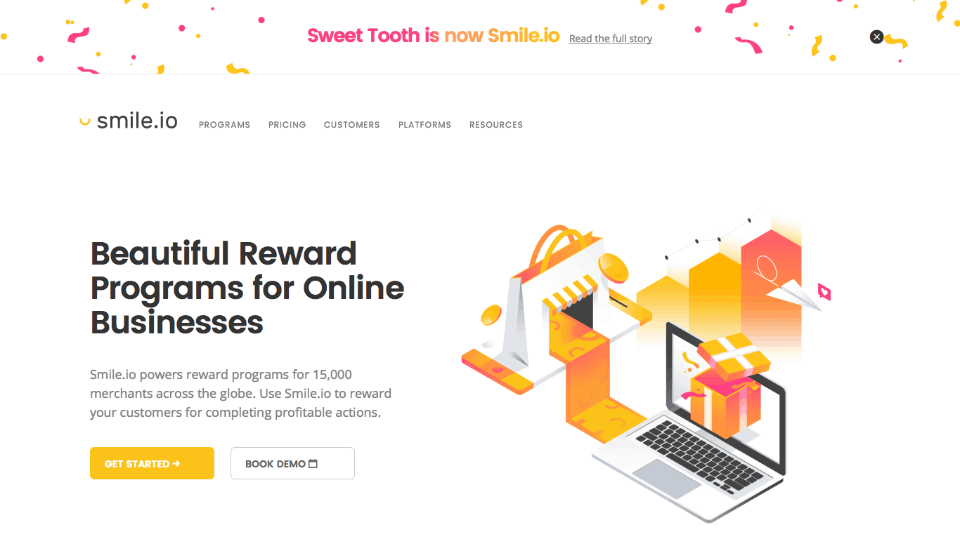 作為 Antovo 的替代品,Smile.io 提供積分和獎勵,鼓勵客戶推薦,並幫助您為頂級客戶提供額外的好東西。 該應用程序是 Sweet Tooth 的新化身,有超過 15,000 家活躍商店在使用它。 計劃適用於各種規模的電子商務商店,從單人單品商店到大型電子商務企業。 開放的 API 允許開發人員將應用程序與任何平台集成,並且與 BigCommerce 和 Shopify 的集成是開箱即用的。 基本會員每月 59 美元,小型企業會員每月 199 美元,專業會員每月 399 美元。 為企業客戶提供自定義報價。