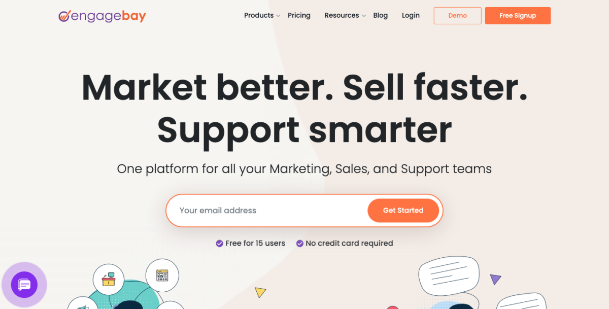 EngageBay 是一個平台,可提供客戶關係管理 (CRM)、營銷自動化工具、幫助台和實時聊天等功能。 它是幫助管理聯繫人、提案和交易、銷售和安排約會的理想選擇。 您還可以使用它來構建登錄頁面、表單和電子郵件序列。