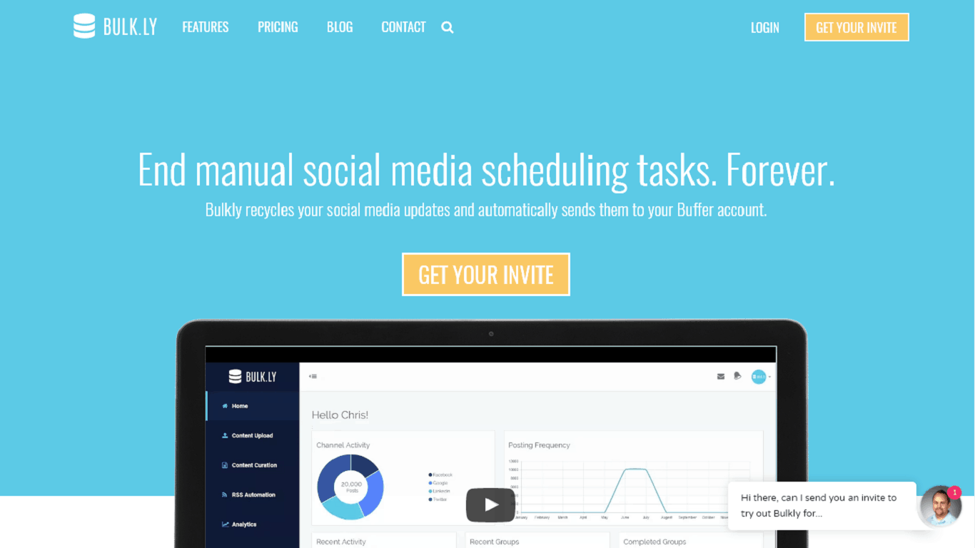 在簡單社交的世界中,Bulk.ly 通過允許您上傳社交媒體帖子的電子表格並將其發送到您的 Buffer 帳戶而佔據主導地位。 您可以從單個 CSV 文件中調整髮布順序、添加相關主題標籤、分類和安排您的社交媒體。 該工具使內容管理變得輕鬆,但仍處於測試階段,因此如果您想使用此工具,則需要請求邀請。 如果您想測試該應用程序,可以免費試用 7 天。