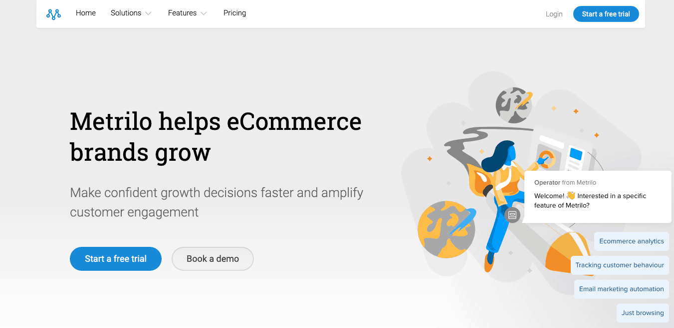 Metrilo 是電子商務品牌的綜合增長平台。 它跟踪客戶在現場的行為,並提供營銷和銷售績效洞察,用於優化營銷支出和投資回報率、CRO、產品管理。 客戶數據庫提供了對個人客戶旅程和細分的全面了解,以識別特定客戶群。 所有這些數據都與電子郵件功能集成,以實現相關參與和推動重複銷售(對聯繫人列表和發送的電子郵件沒有限制)。 定價取決於使用的功能,從 Essential 計劃開始,僅限分析,價格為 119 美元。 Metrilo 與 Shopify、WooCommerce 或 Magento 上的商店完全集成,無需任何設置即可開始處理數據。