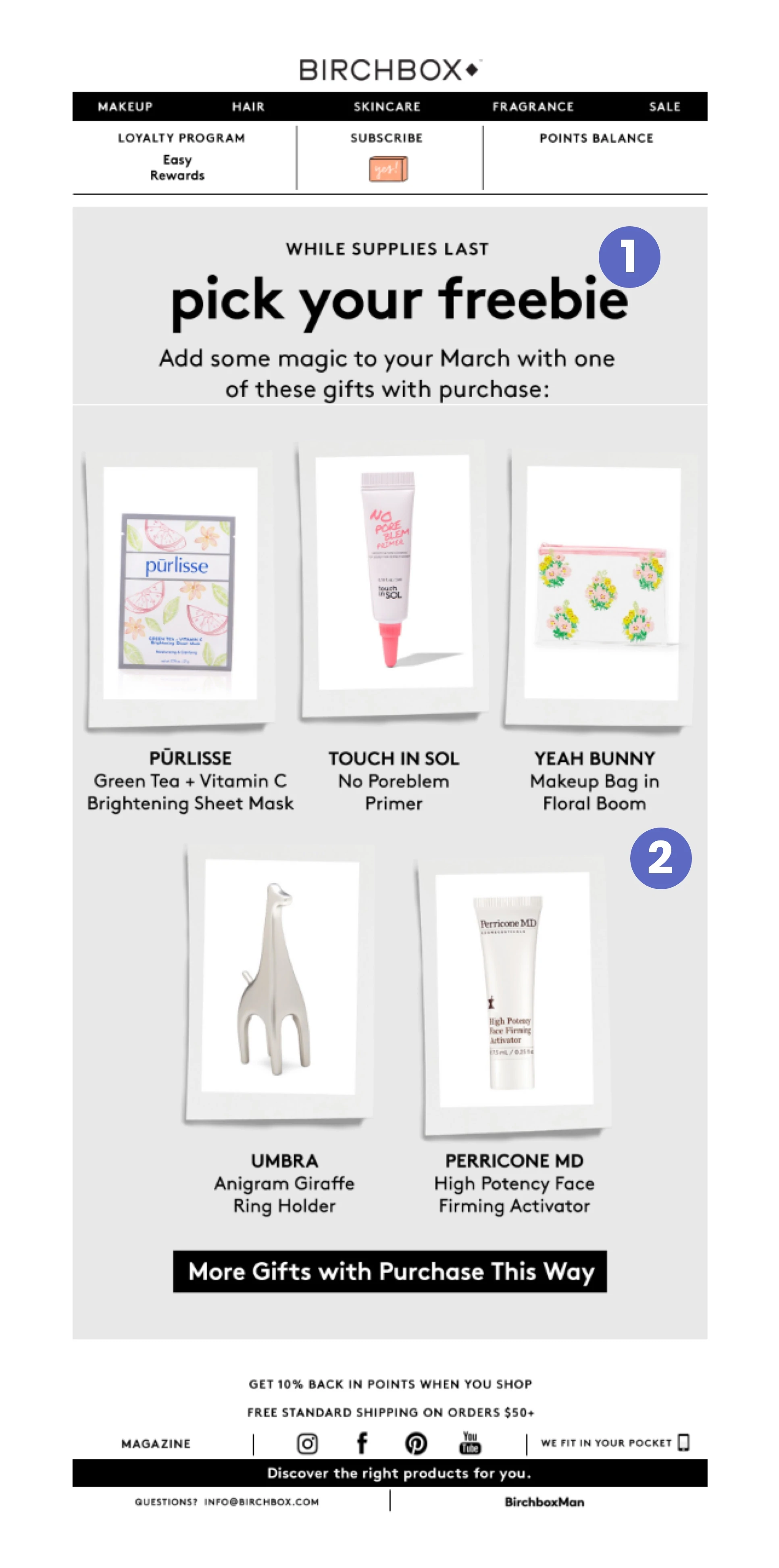 Birchbox is able to do this because they regularly offer free gifts—one of the best forms of “value” you can expect from a brand in your inbox, which makes it hard to unsubscribe.