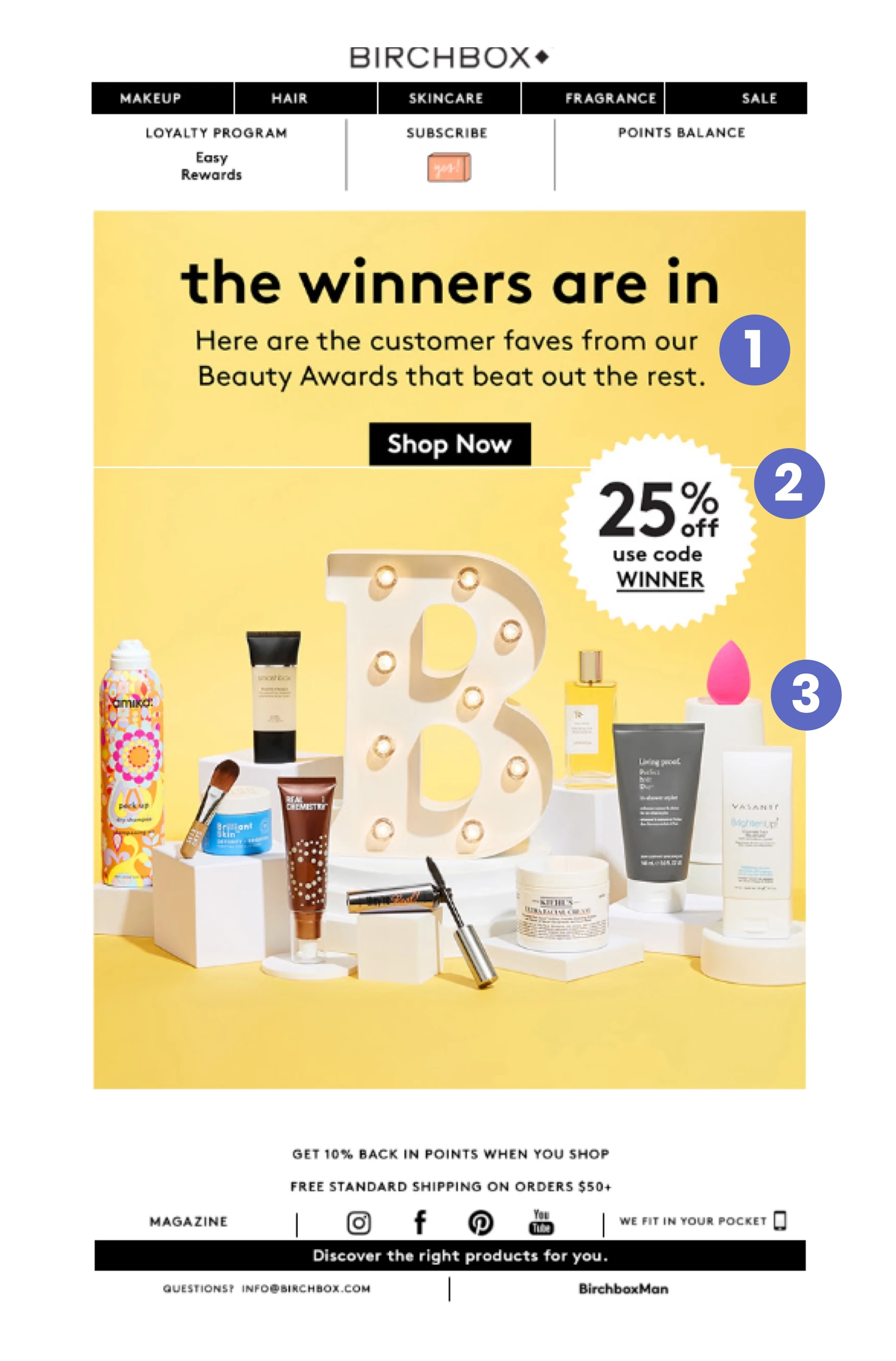 既然我們已經通過了歡迎電子郵件,我們將看到一種新格式,您將繼續看到這種格式。 標題現在集中在推廣他們的忠誠度計劃,這是一項鼓勵重複購買的舉措。 他們甚至會顯示您當前的忠誠度積分餘額,以鼓勵您購物。