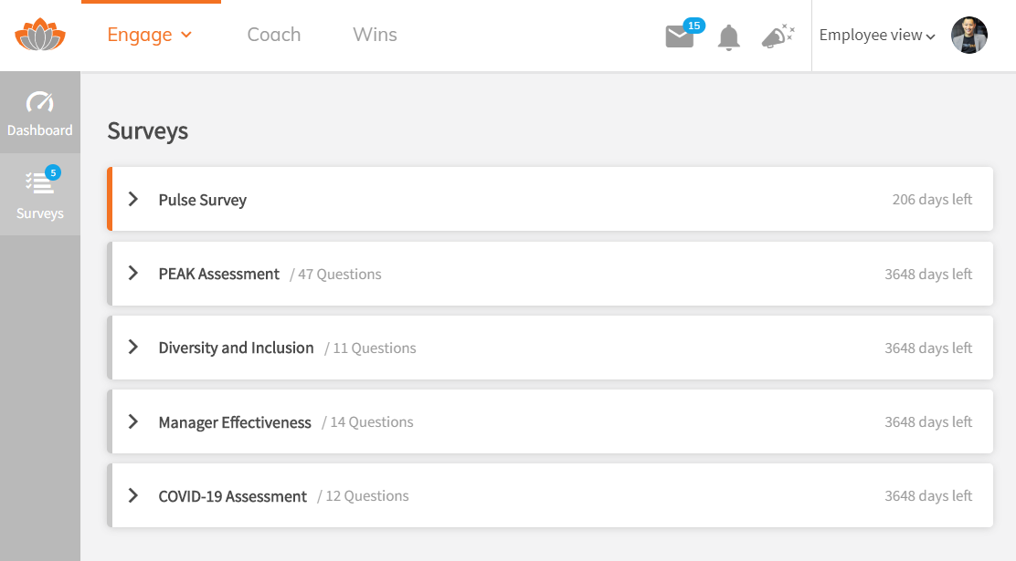 這就是為什麼員工反饋調查很重要。 從快速檢查和退出調查到年度評估,定期調查工人應該是重中之重。 這樣做可以幫助您在員工有機會滾雪球之前識別影響員工敬業度的問題。