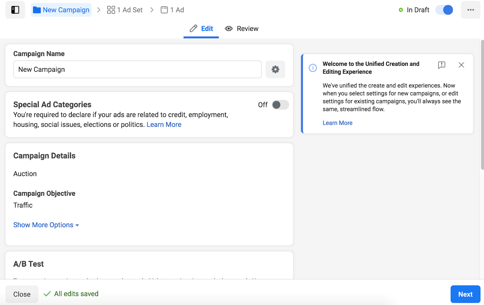 按照這個 Facebook 廣告教程設置和啟動您的第一個廣告。