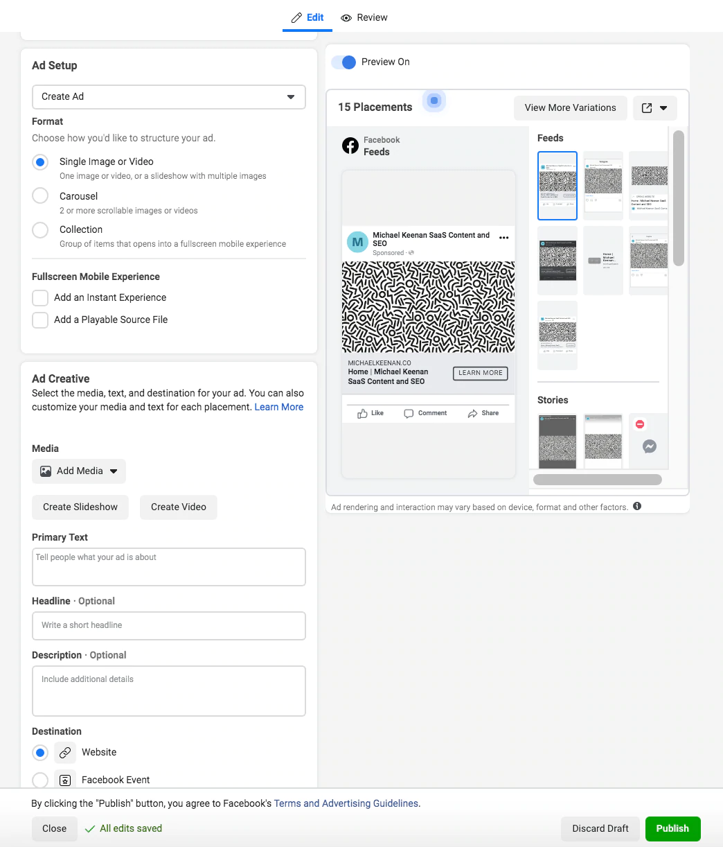 創建 Facebook 廣告的最後一步是提出創意——廣告本身。