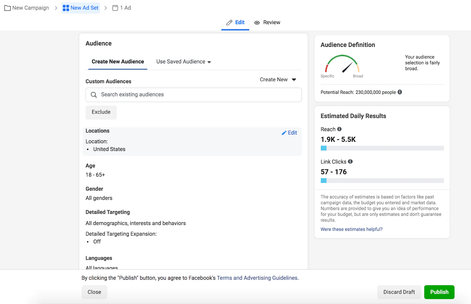 由於興趣、行為和人口統計受眾通常非常廣泛,並且由數十萬到數百萬的用戶組成,因此最好對它們進行單獨測試,這樣您就可以找到最適合的一種。 一旦您縮小了通過廣告轉化的受眾,您就可以開始嘗試使用其他受眾層來擴大您的潛在客戶活動。