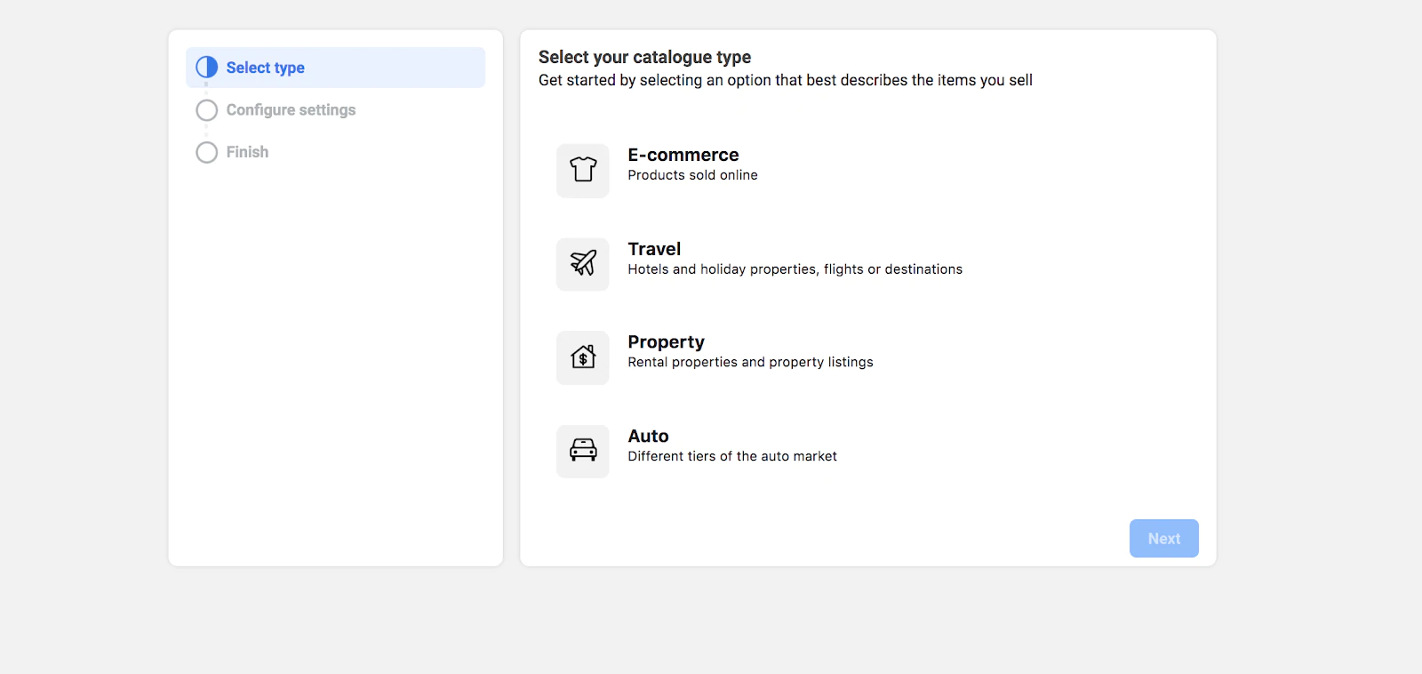 創建目錄並準備好製作動態產品廣告後,返回 Ad Manager 並創建一個以產品目錄銷售為目標的新廣告系列。 這將允許您在廣告組級別選擇您的產品目錄,並自定義您希望向誰展示相關產品。