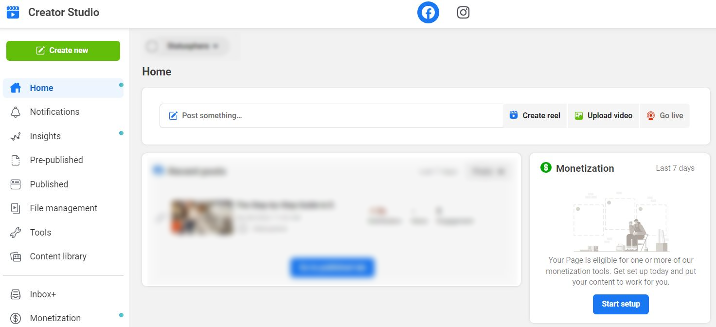 - 在一處跟踪內容表現和發布的帖子。 Creator Studio 還集成了 Instagram 和 Meta 的廣告功能。