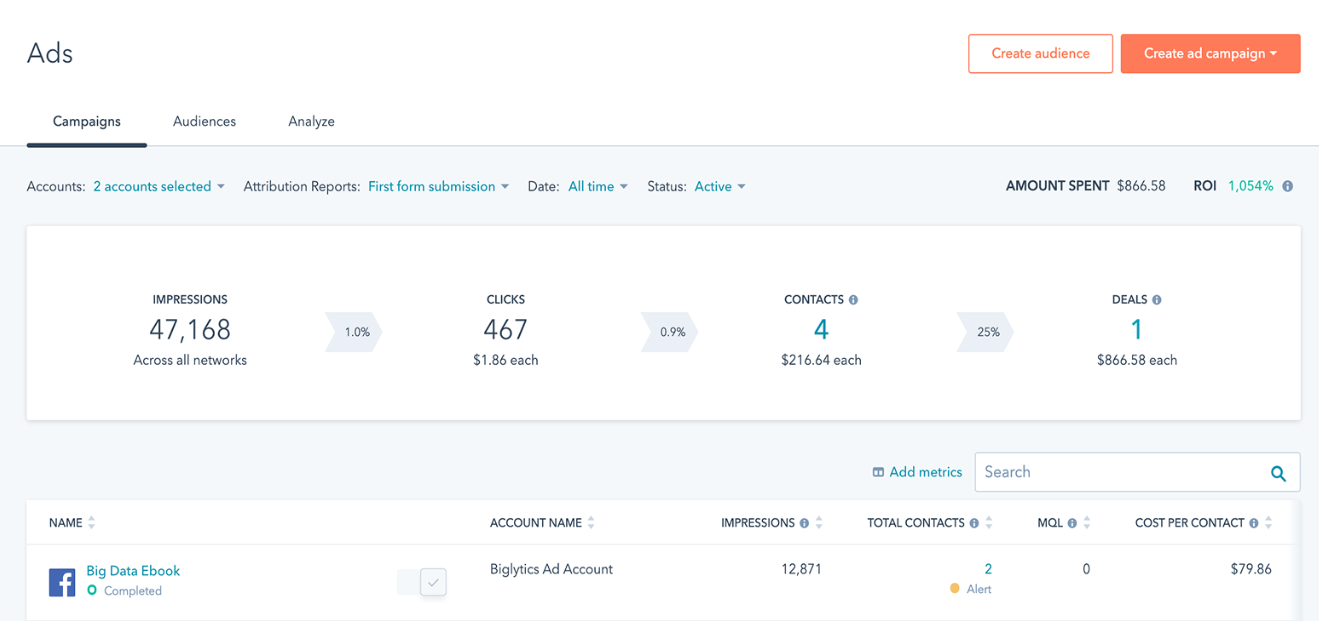 如果您使用 HubSpot 作為您的 CMS 或 CRM,那麼該平台中內置了大量 Facebook 營銷工具。