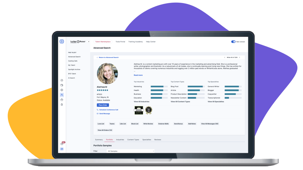 您需要高質量的文案嗎? 為您的下一個營銷活動設計創意圖形怎麼樣? 您可以使用 WriterAccess 為這兩種類型的項目找到頂級人才。
