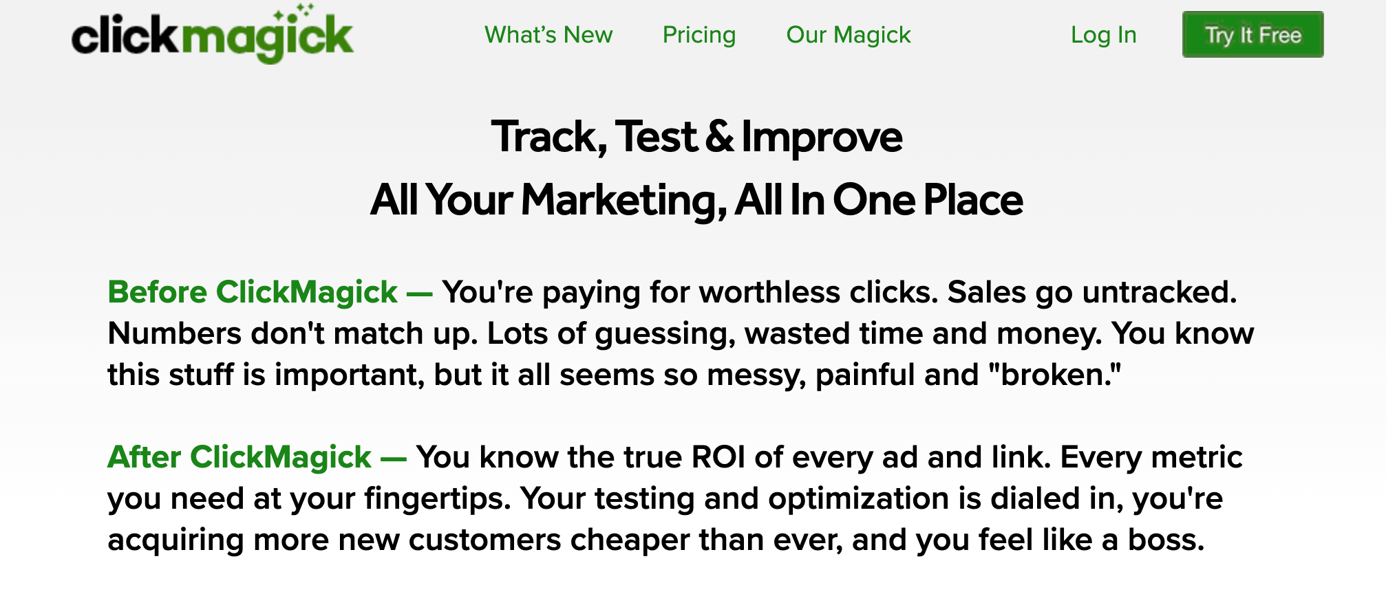 ClickMagick 是 FunnelFlux 的替代品。 它具有 A/B 測試功能,可以幫助您找到最佳著陸頁。