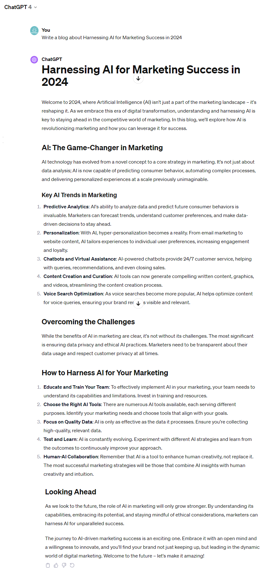 為了說明這一點,我們要求 ChatGPT 撰寫這篇博文,請查看: