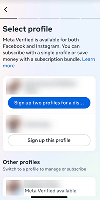 - 選擇您要訂閱的個人資料(符合資格的個人資料下方會顯示元驗證可用)