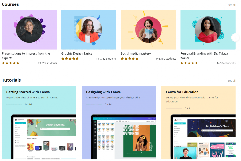 Canva 通過他們的設計學院在將互動營銷與教育方法相結合方面做得非常出色。