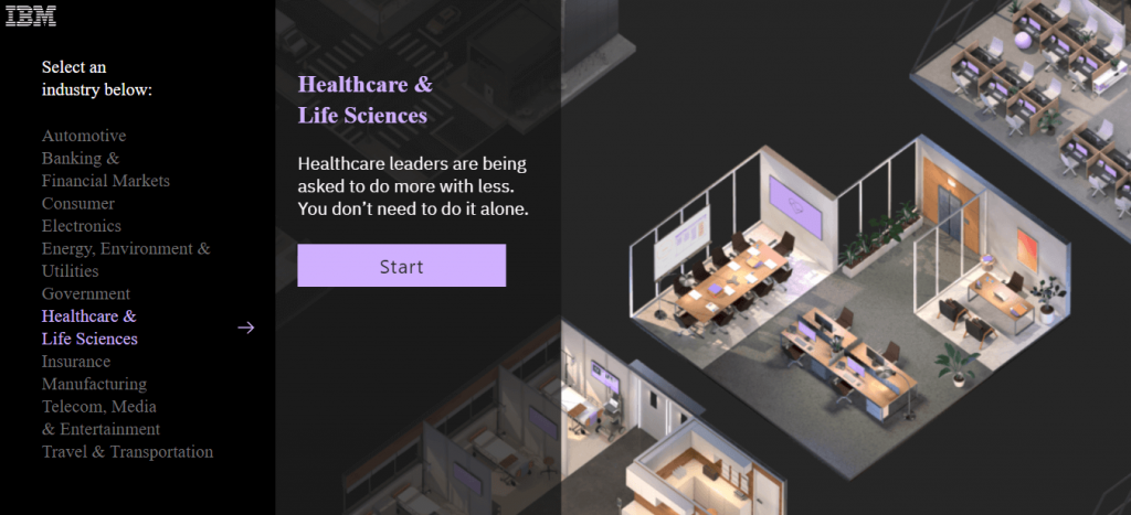 通過使用動畫和“選擇自己的冒險”路徑,觀眾可以通過點擊插圖建築來選擇不同的行業。