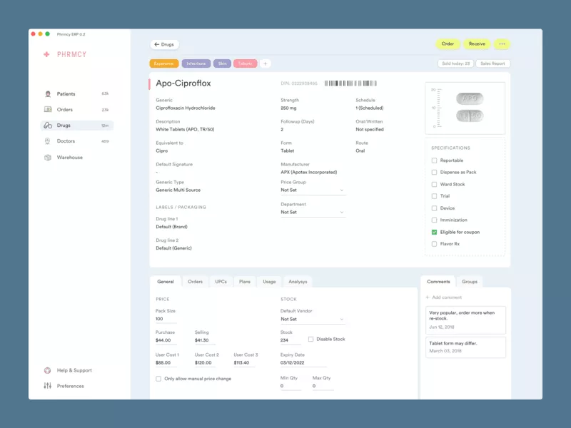 - 有關藥品供應情況的更新:他們通過推送通知與該電子藥房保持聯繫,並不斷獲取有關藥品或醫療設備供應情況的所有更新。
