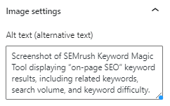 描述性標題和圖像替代文本(或替代標籤)也至關重要。 這些元素不僅有助於視力障礙人士輕鬆訪問圖像,還有助於提高您的頁面 SEO 和 SERP 排名。