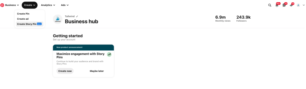 第 1 步– 登錄您的Pinterest 企業帳戶並點擊創建故事 Pin 圖。