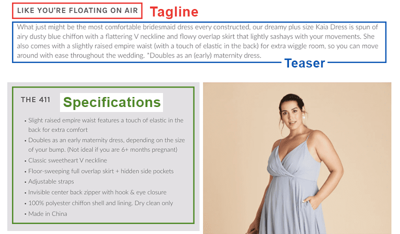 這個由三部分組成的模板可用於各種電子商務業務,因為它有效。 看看這些使用此公式的產品描述的真實示例: