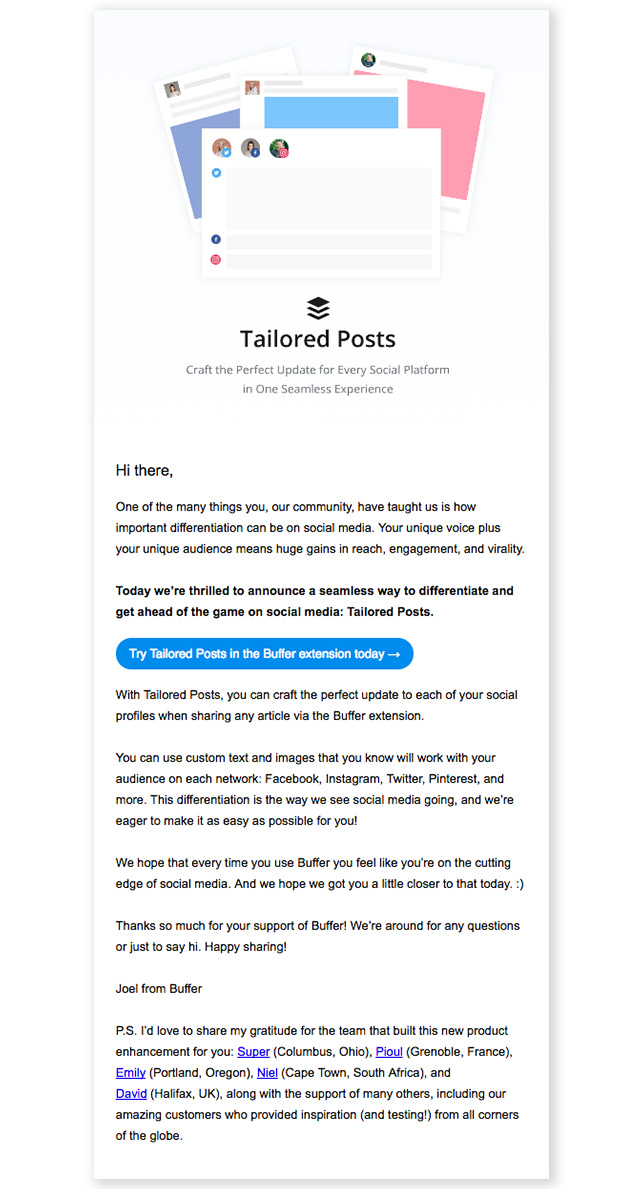 - 文本,圖像非常有限,佈局類似於我們每天用自己的話寫的“個人”電子郵件。 在 B2B 環境中受到許多人的青睞。