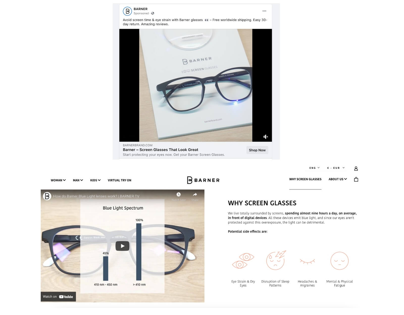 以下是 Barner 的重定向廣告示例,該廣告將購物者帶到相關產品頁面: