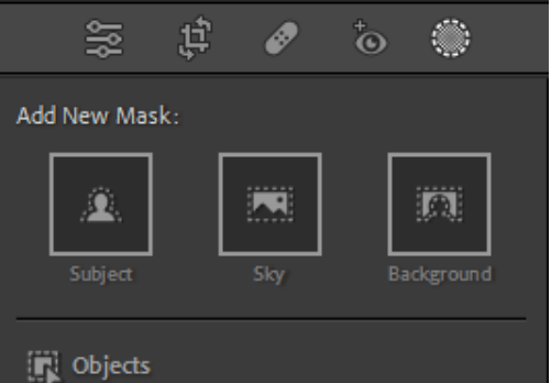 只需單擊遮罩圖標,然後選擇您要對其應用更改的照片部分:天空、背景或主題。