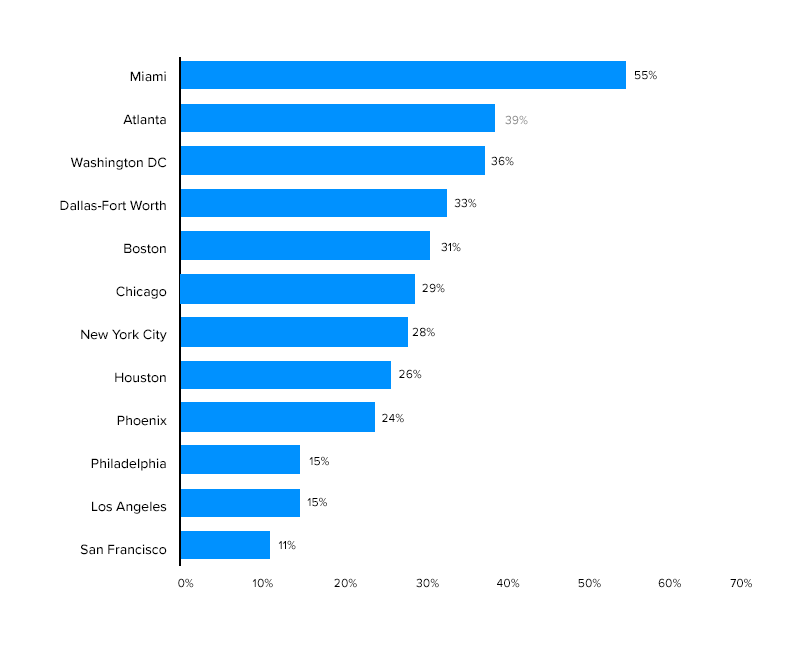 22. 優步僅在 5 個大都市地區處理 22% 的總出行預訂
