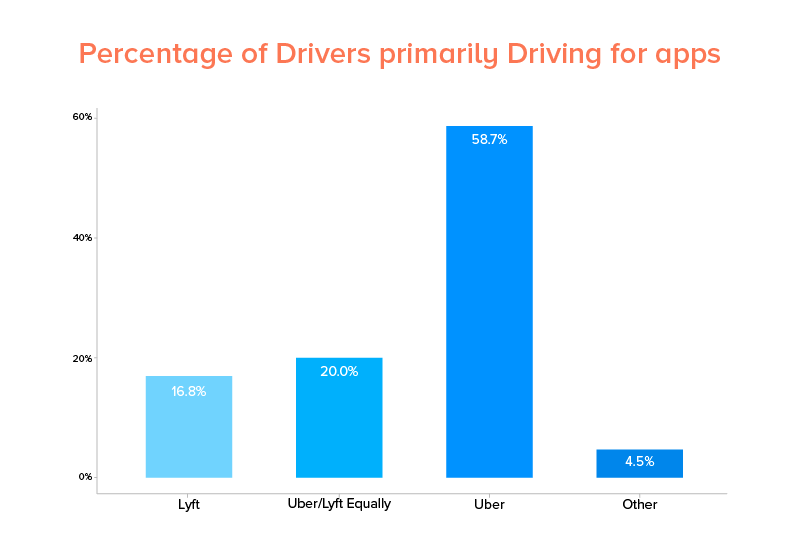 優步的業務和收入模式不僅基於其乘客,還基於司機。 因此,這使得優步不僅要滿足客戶的需求,還要考慮到司機的需求。 由於他們在將司機的需求和他們的問題納入視角方面採取了令人印象深刻的步驟,如圖所示,美國 58.7% 的司機更喜歡優步作為他們的主要平台。